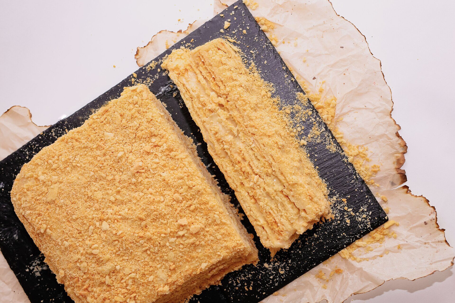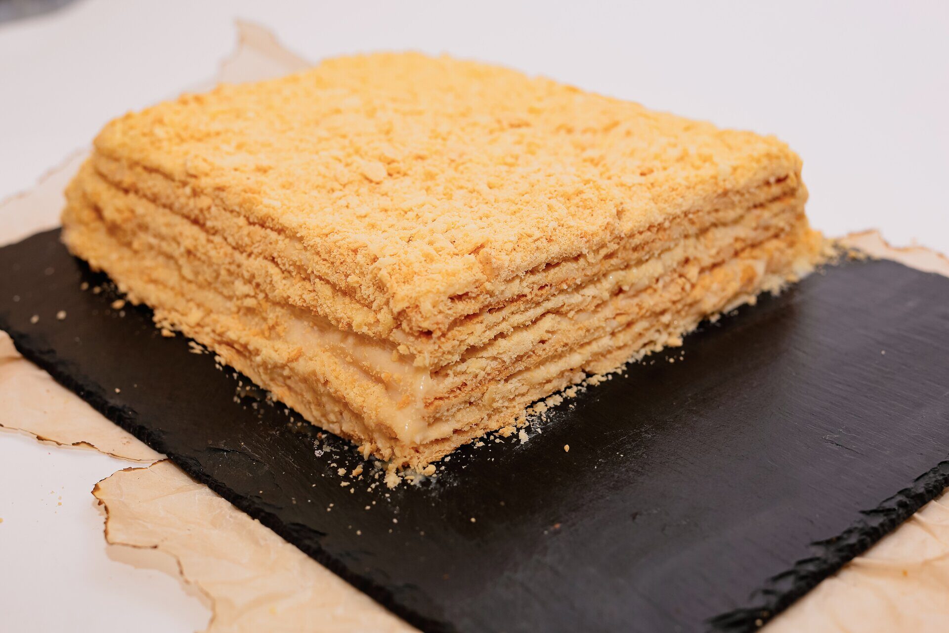 Торт Наполеон имеет прямоугольную форму. Вес 2 кг или 4 кг